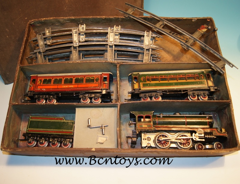 Conjunto escala 0 con la Mastodonte peque?a de Pay?. Dos vagones de pasajeros litografiados. Circuito de v?as y caja original. Funcionamiento a cuerda. Una de las locomotoras de Pay? m?s dif?ciles de conseguir. Excepcional estado de conservaci?n. A?os 30.