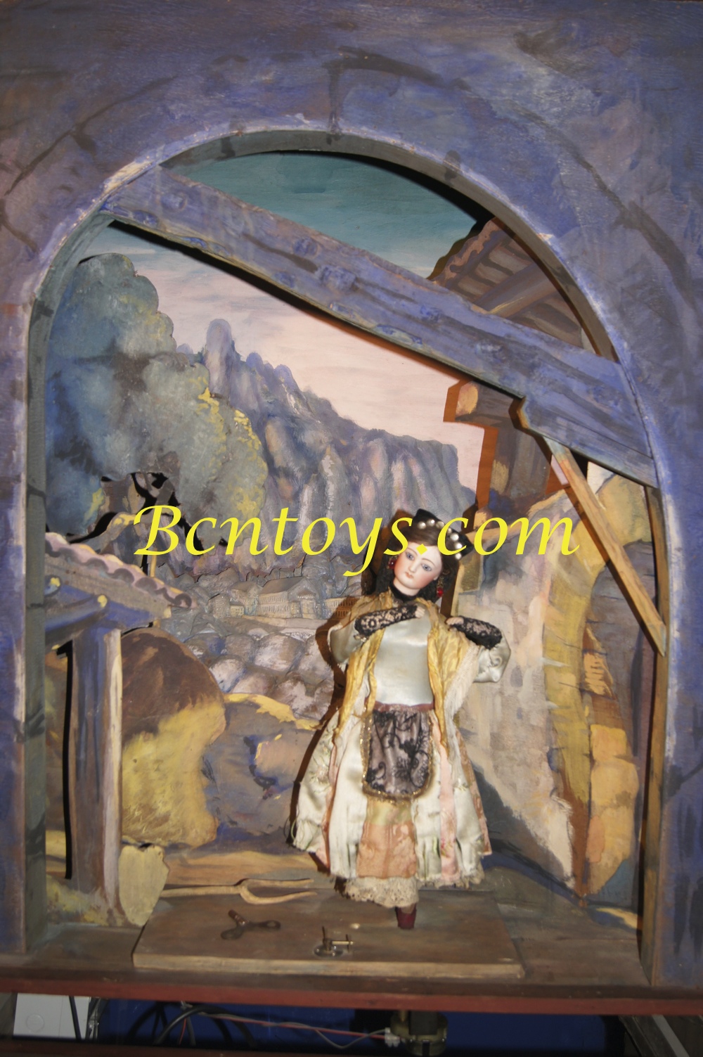 Autómata bailarina catalana . Posiblemente Vichy. Hacia 1880. Adaptada en la época para la sala de muñecos mecánicos de las atracciones Apolo de Barcelona. Pieza de museo.