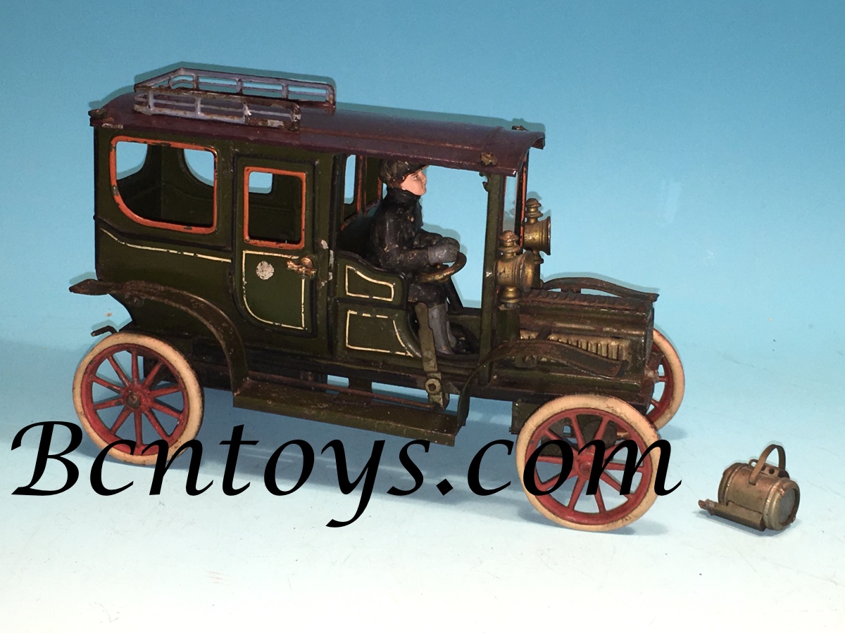 Auto Carette. Hacia 1911. Con conductor. Pintado a mano. Todo original. Conductor original. Faros. Neumáticos de caucho originales. Mecanismo de cuerda. Cristal y parabrisas de la época.
