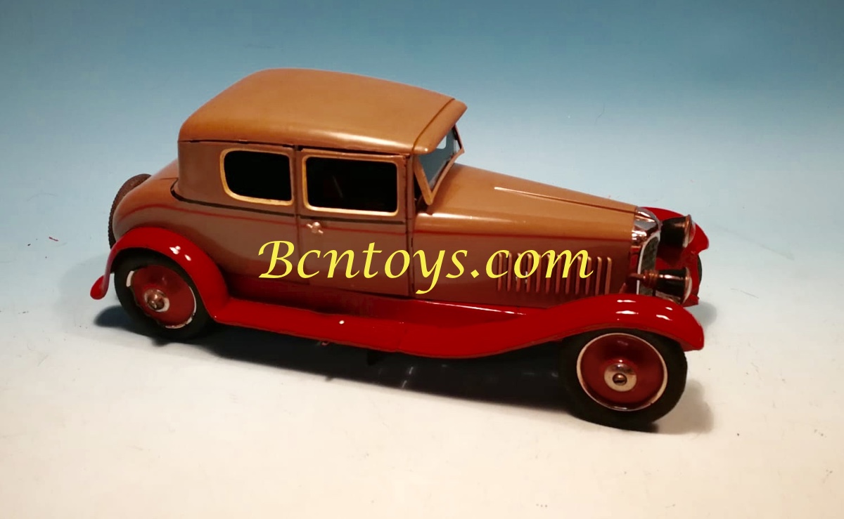 Auto coupé Payá. I 968 Rarísima versión pintada con neumáticos de goma y rueda de recambio. Mecanismo de cuerda y luz mediante pila de petaca. Espectacular.