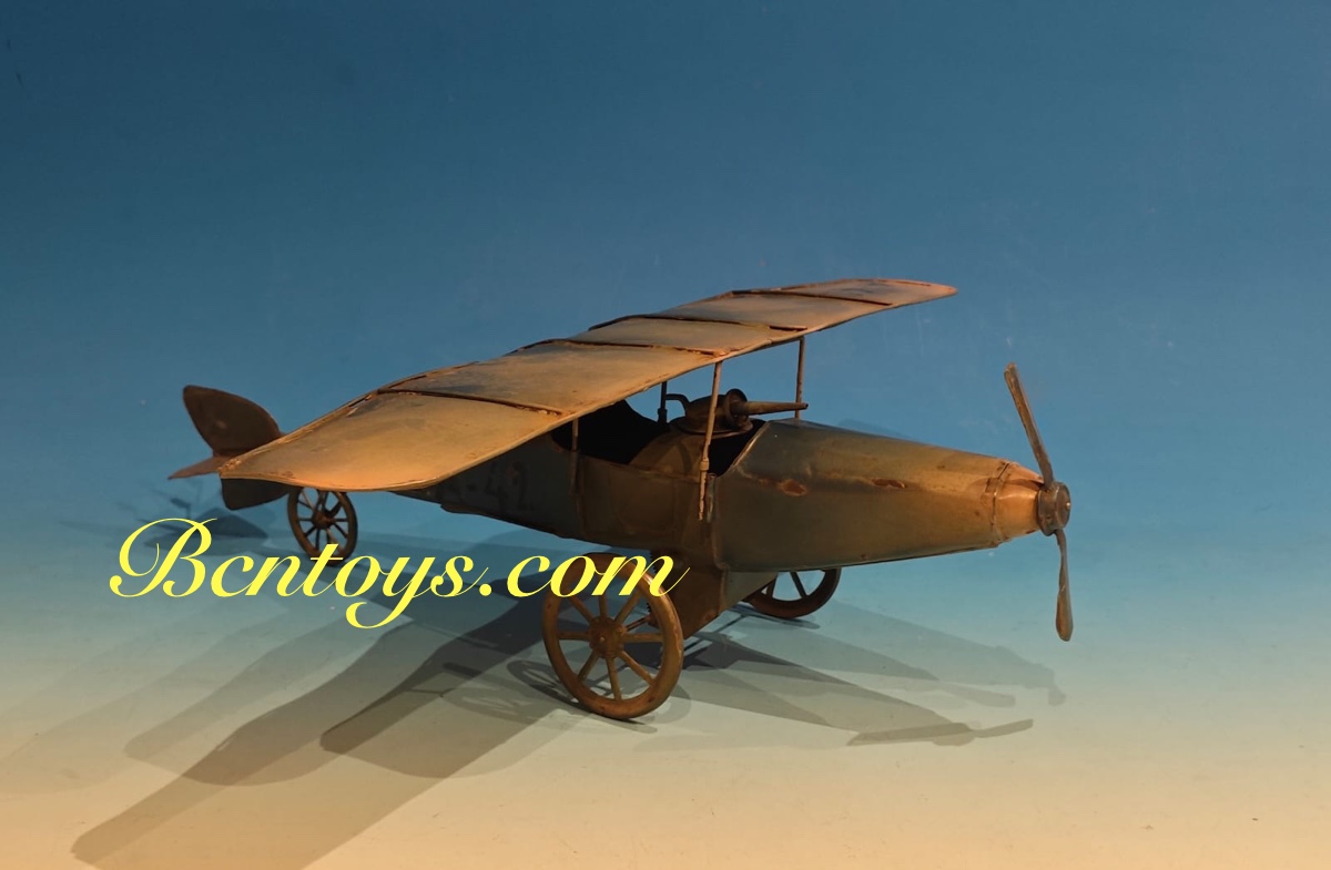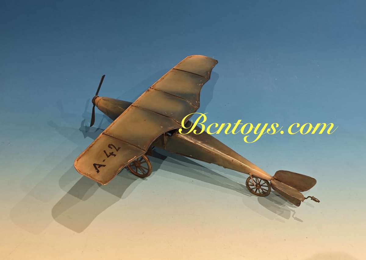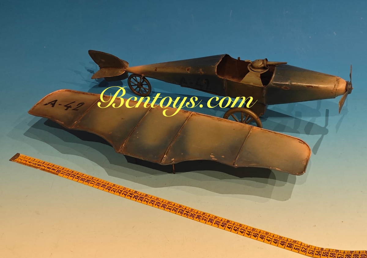 Extraordinario avión de hojalata. Denia. 50×55 cm. Con mecanismo.