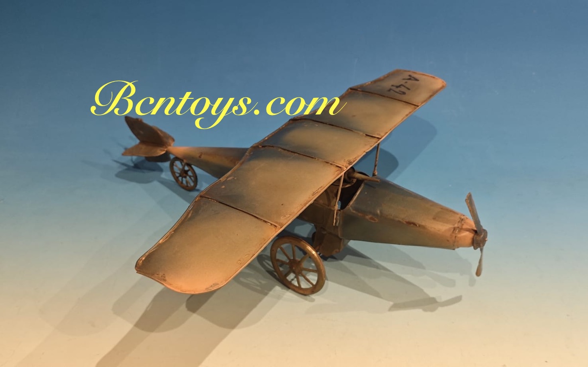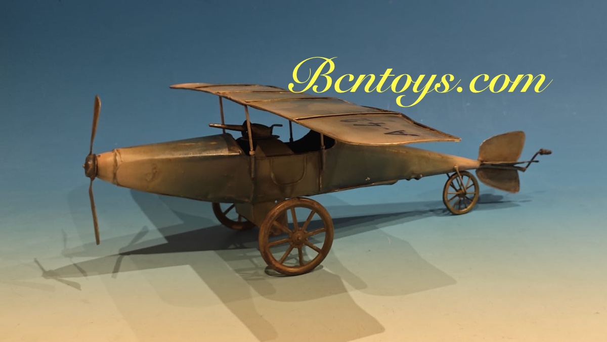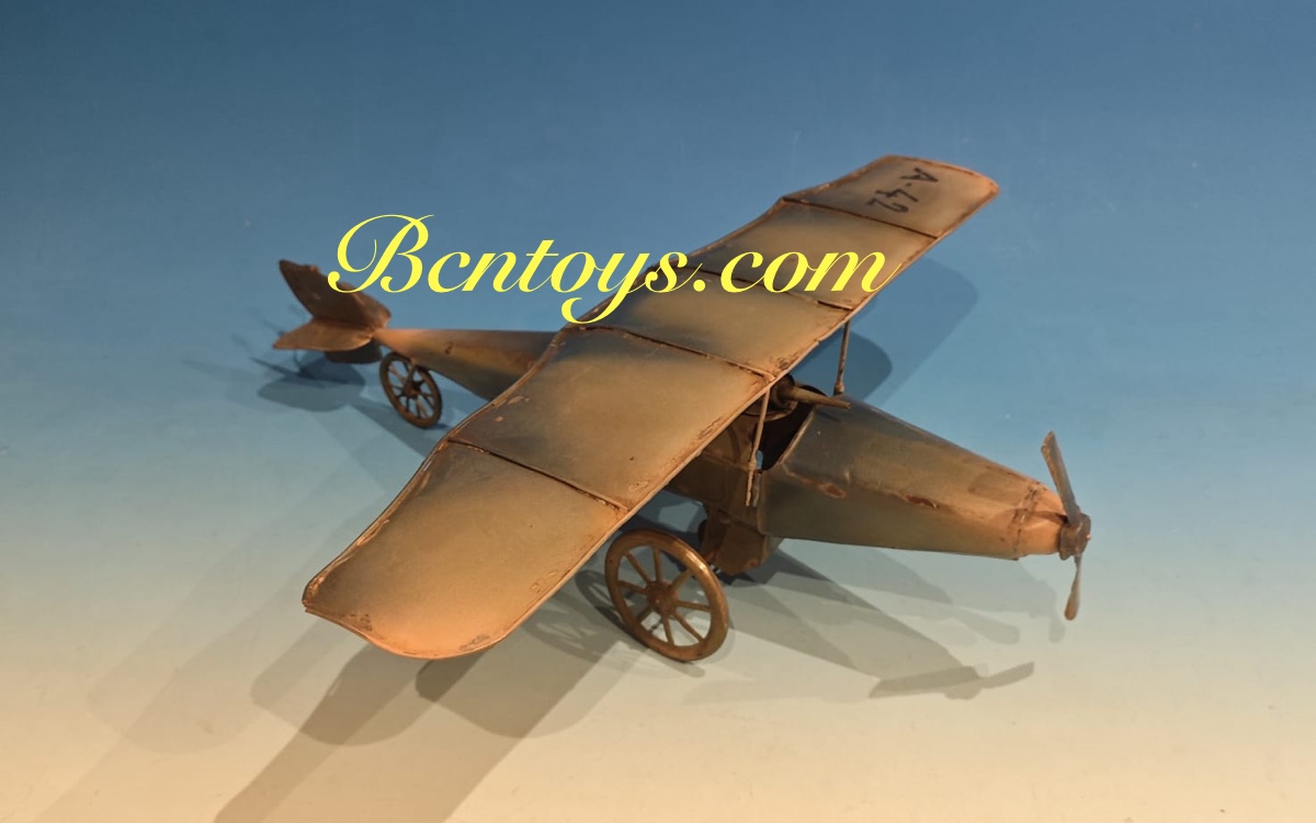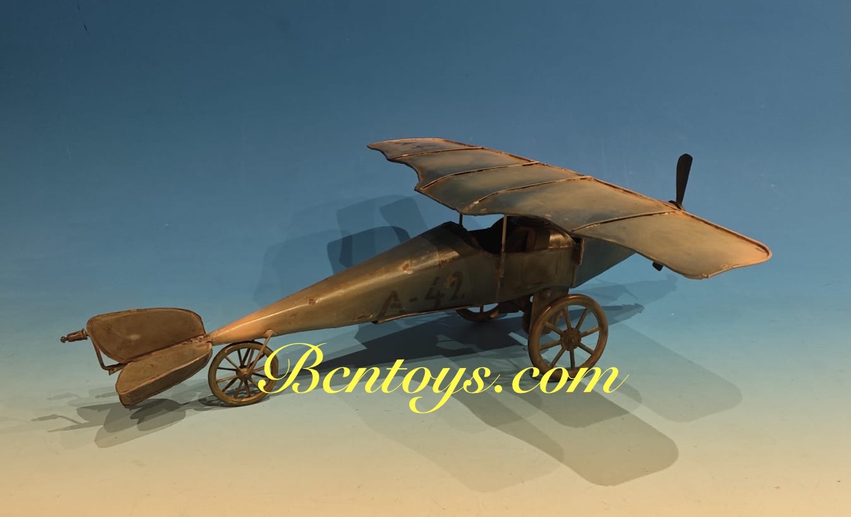Extraordinario avión de hojalata. Denia. 50×55 cm. Con mecanismo.