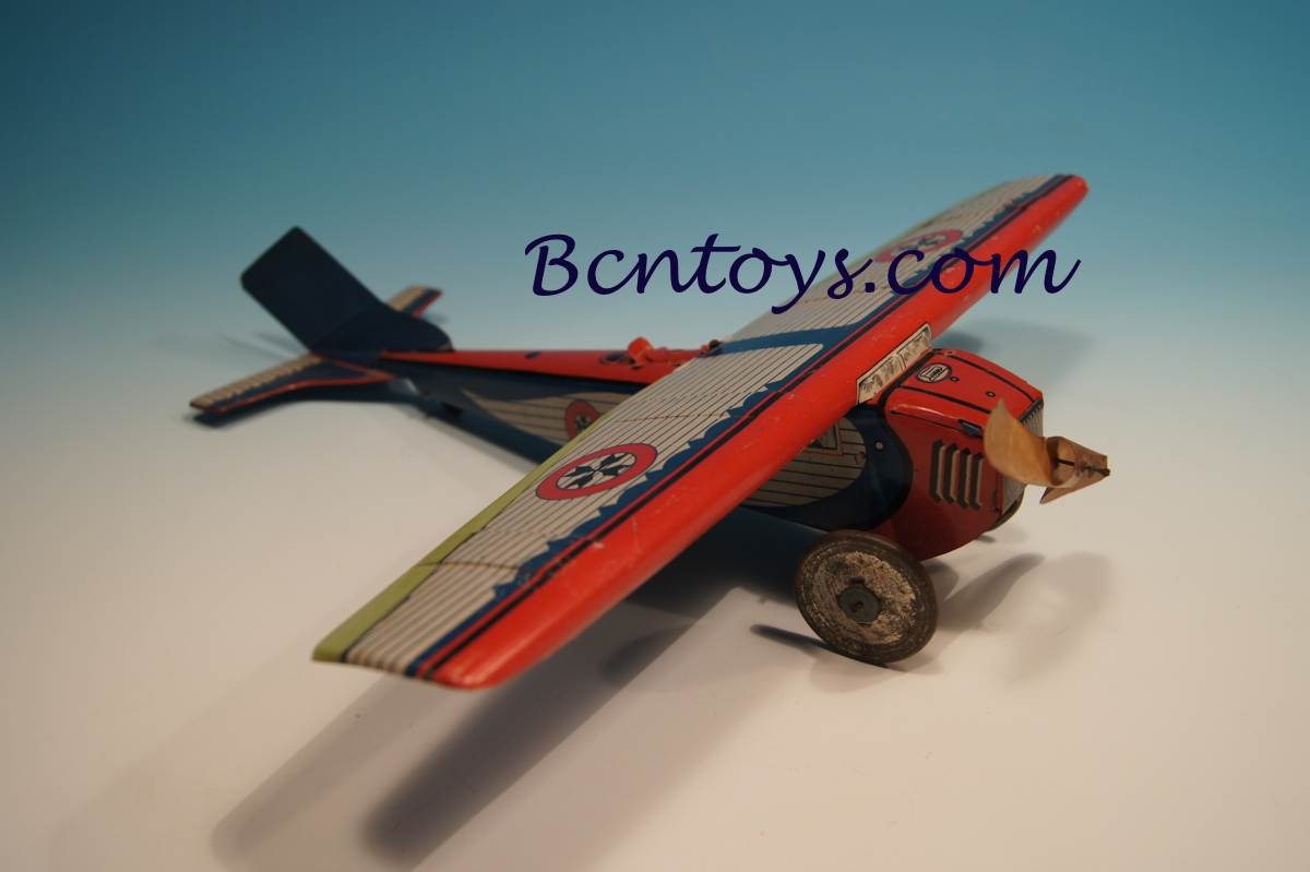 Juguete n? 607 de Pay?. Con litograf?a de pasajeros tras las ventanillas. 37 x 37 cm. Mecanismo de cuerda. Circa 1943.