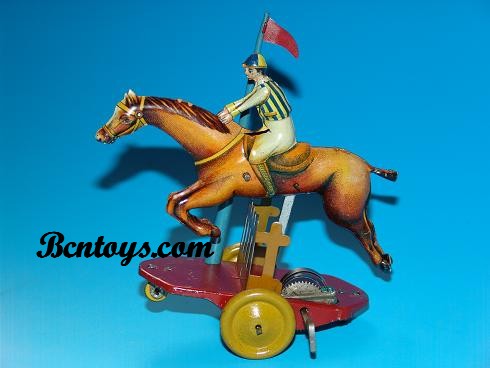 Caballo Pay? saltando la valla litografiado con mecanismo de cuerda. Excepcional estado de conservaci?n.