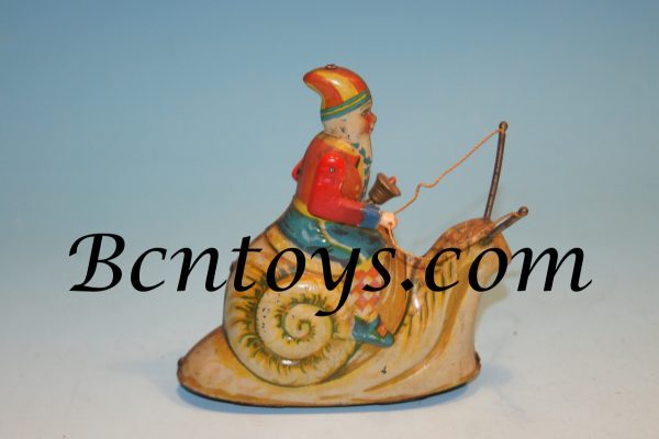 Caracol con gnomo. Litografiado con su campana. Todo original. Muy decorativo. Juguetes y Estuches.