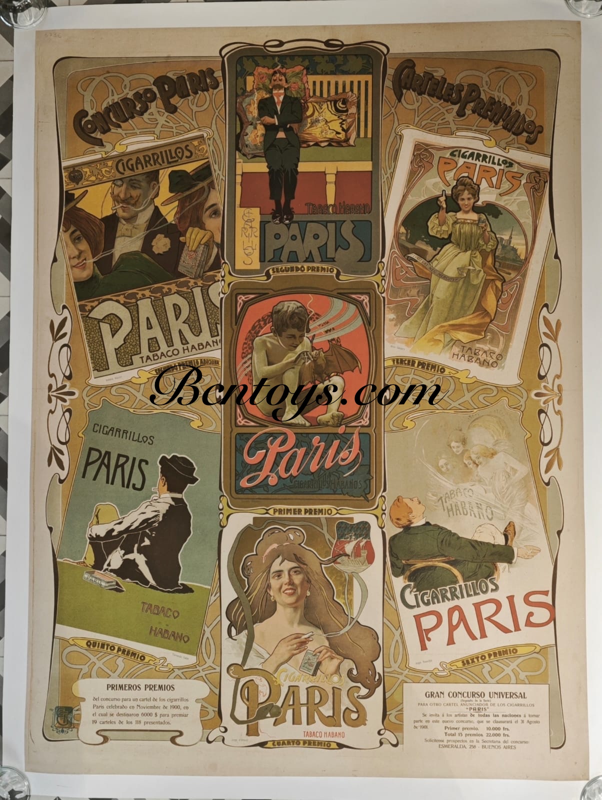 CARTEL ORIGINAL GRAN FORMATO CONCURSO PARIS CARTELES PREMIADOS CIGARRILLOS PARÍS 1901