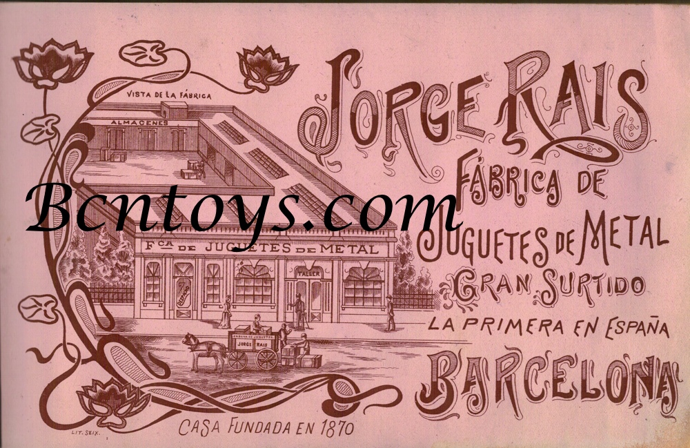 Catálogo Jorge Rais. Fábrica de Juguetes de metal. Barcelona. Cerca de 200 juguetes repartidos en 57 láminas. Tapa dura. Trenes, arrastres, payasos, carrozas, tartanas, cuadras, carros, tranvías, tranvías a caballo, fuentes, barquilleras, cocinas, etc. Coleccion Bcntoys.