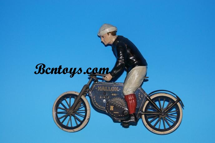 Motocicleta de Lehmann Halloh. A?o 1912. Mecanismo de cuerda con volante de inercia que hac?a que la moto no necesitase ruedas laterales. Para hacer todo el giro necesitaba un di?metro de 12 metros. Muy buen estado. Primera versi?n pintada a mano.