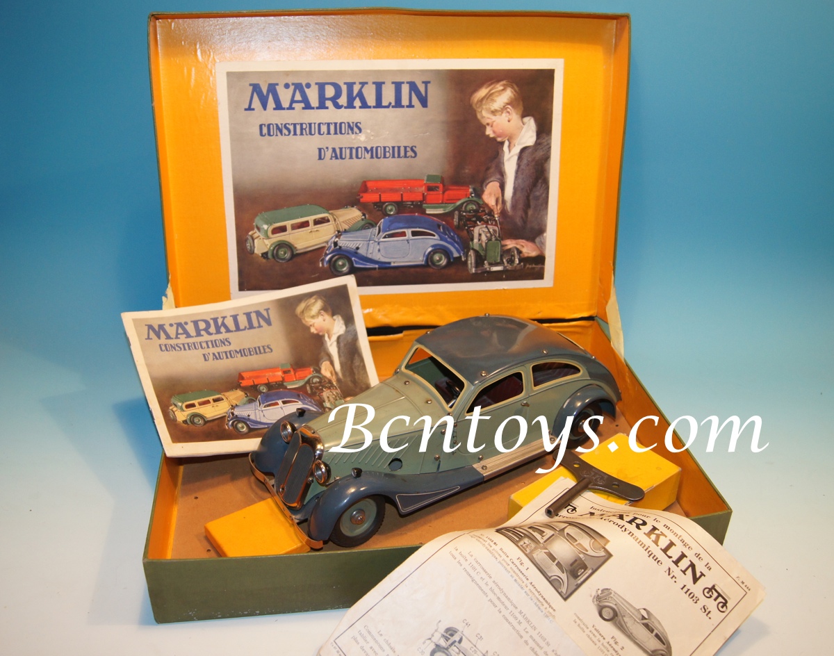 Coche aerodin?mico M?rklin 1103. En caja original. Funcionamiento a cuerda. Con documentaci?n, llave original. a?os 30.