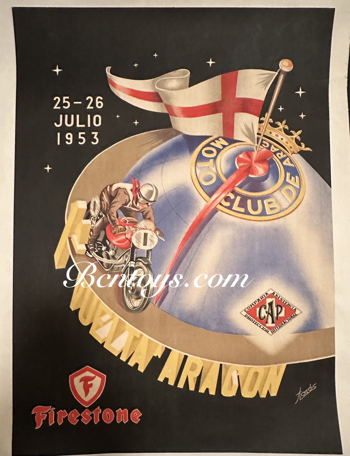 Cartel original 1 vuelta a Aragón. 1953. Firestone. 51 x 69 cm (sin contar entelado)