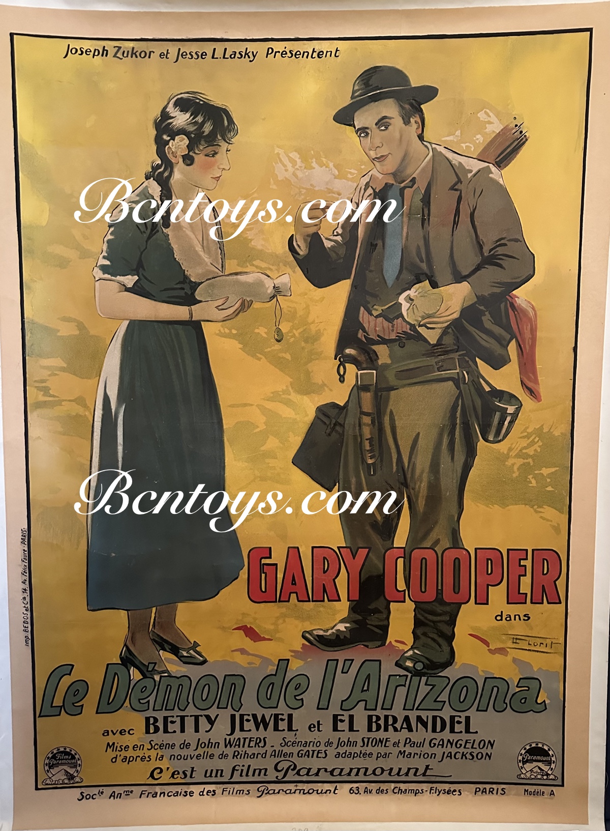 POSTER ORIGINAL LE DEMON DE L ARIZONA GARY COOPER 1927 CINE MUDO