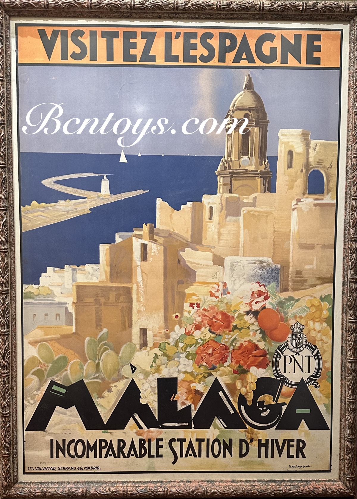 POSTER ORIGINAL PNT 1929 MÁLAGA VISITEZ L ESPAGNE