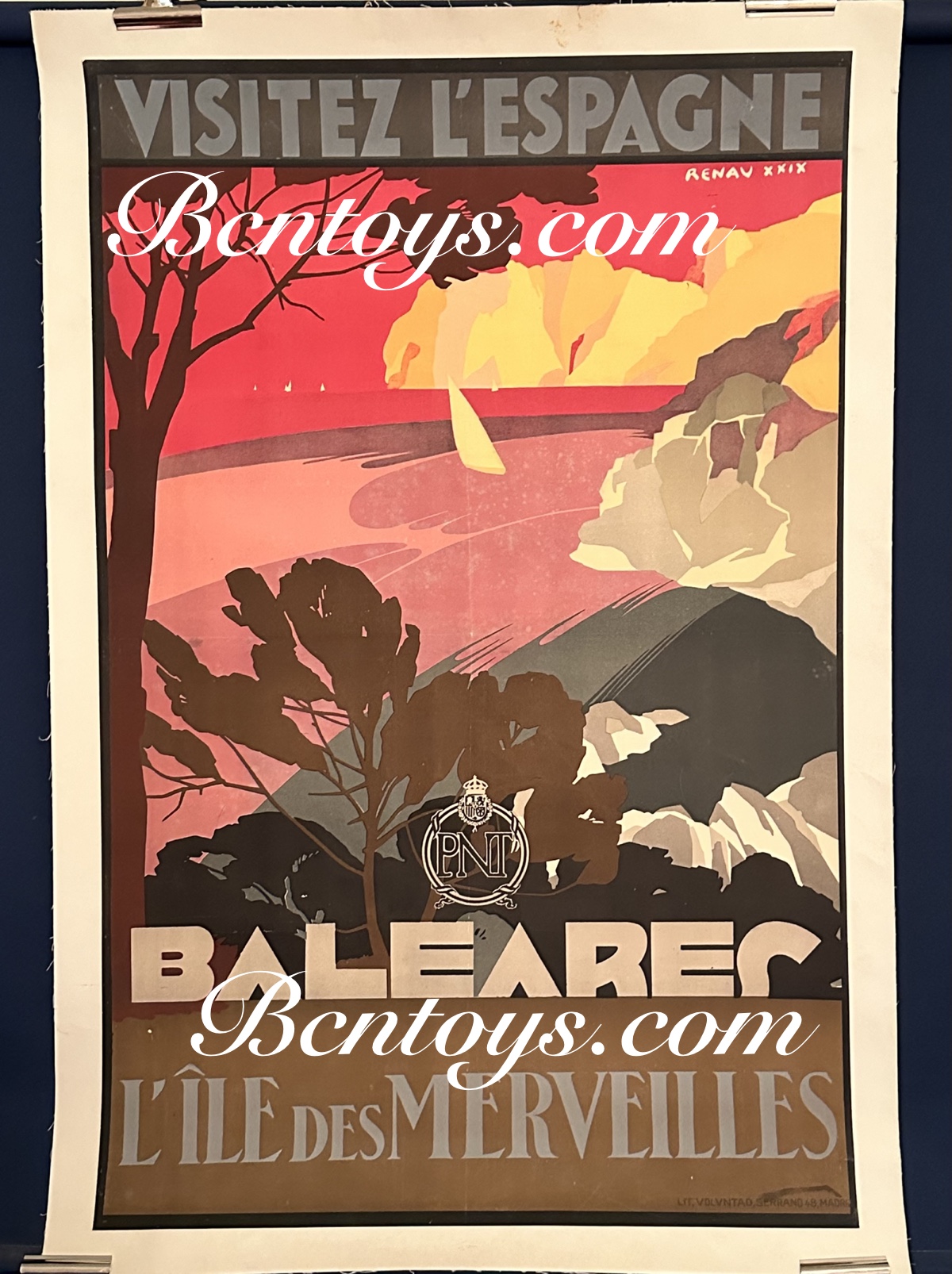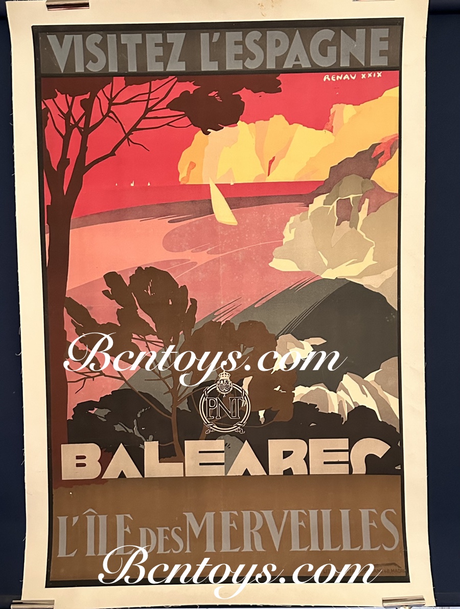 Poster BALEARES. Poster original entelado.1929. Ilustrador Renau. 1929. Patronato Nacional Turismo