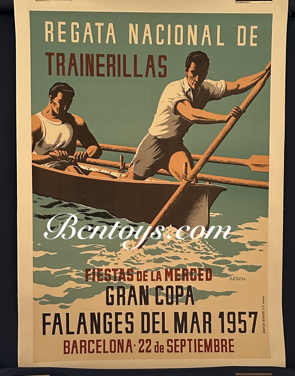 POSTER ORIGINAL REGATA NACIONAL TRAINERILLAS 1957 BARCELONA