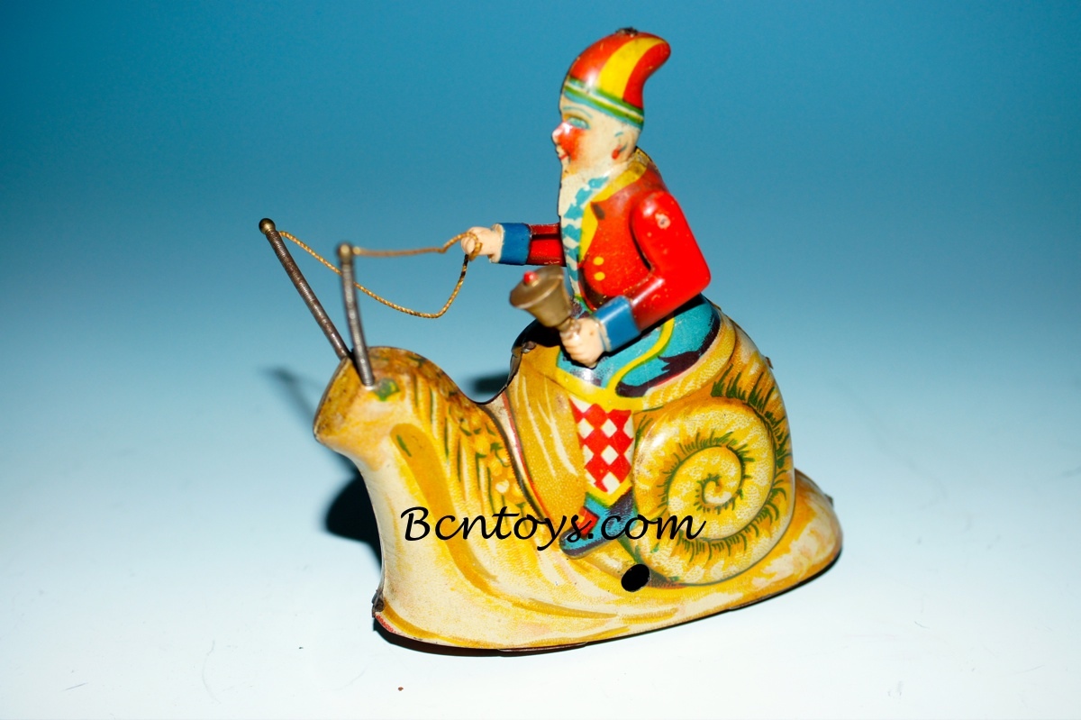 Rar?simo personaje de Santa Claus encima de un caracol. Juguete litografiado de JYE. Espa?a. A?os 50. Con mecanismo de cuerda.