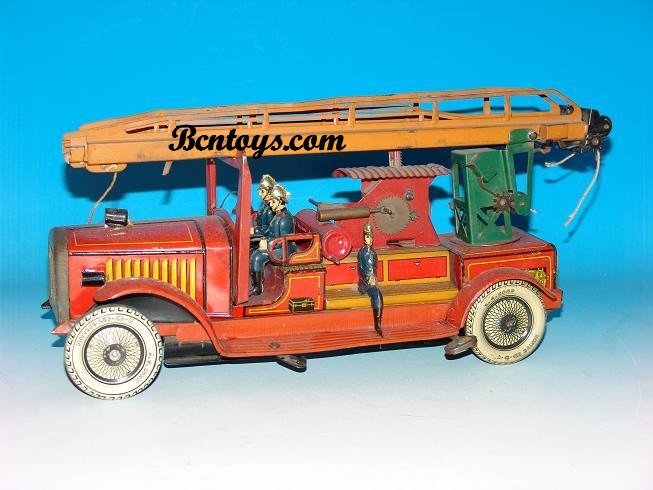 Cami?n litografiado de bomberos. Gunthermann. A?os 30. Con bomba de agua. Mecanismo de cuerda. El m?s grande de su serie.