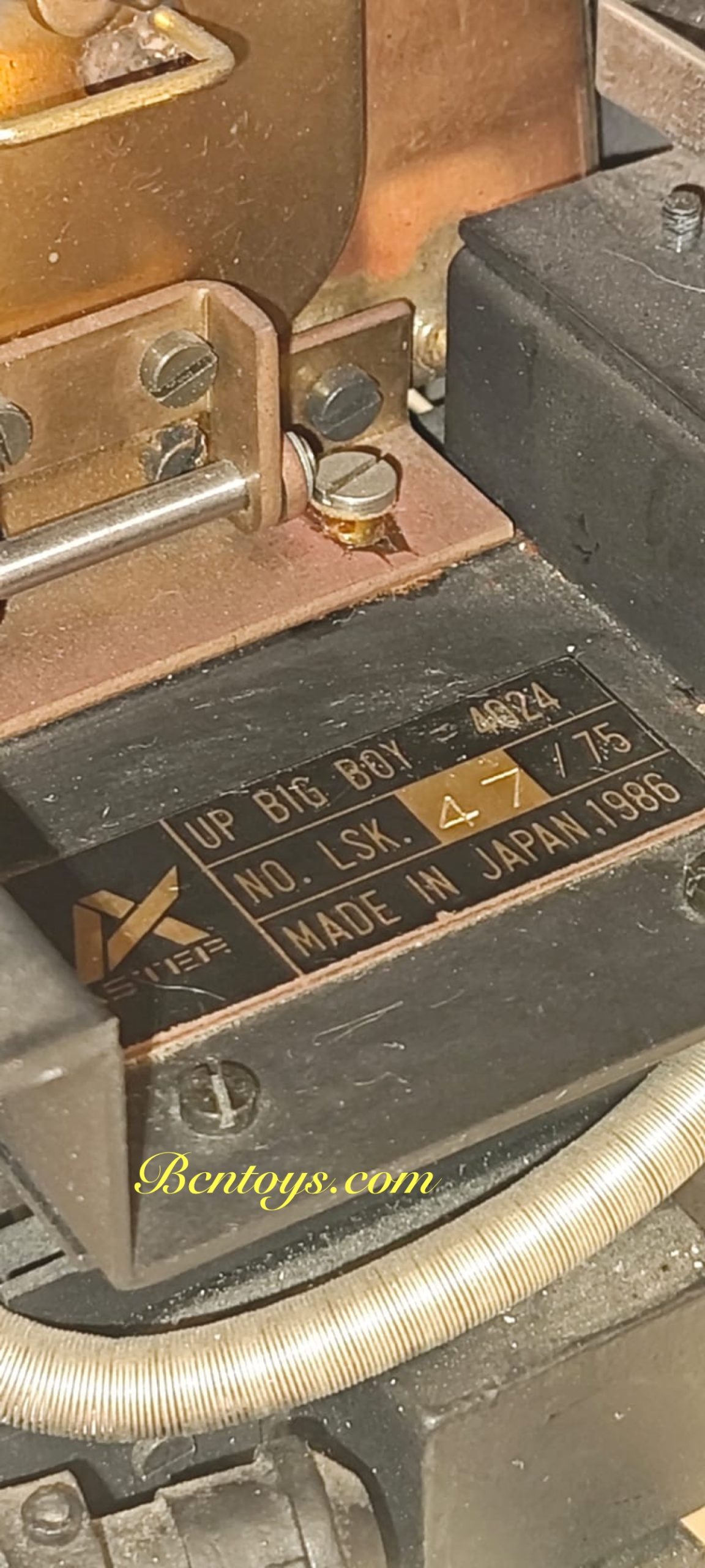 Serie limitada número 47 de un total de 75 unidades. Made in Japan 1986. La locomotora pesa 14, 3 kg más tender de 4.3 kg. Longitud total 114 cm. Sin uso. Funcionamiento con alcohol. Depósito de agua 1 litro.