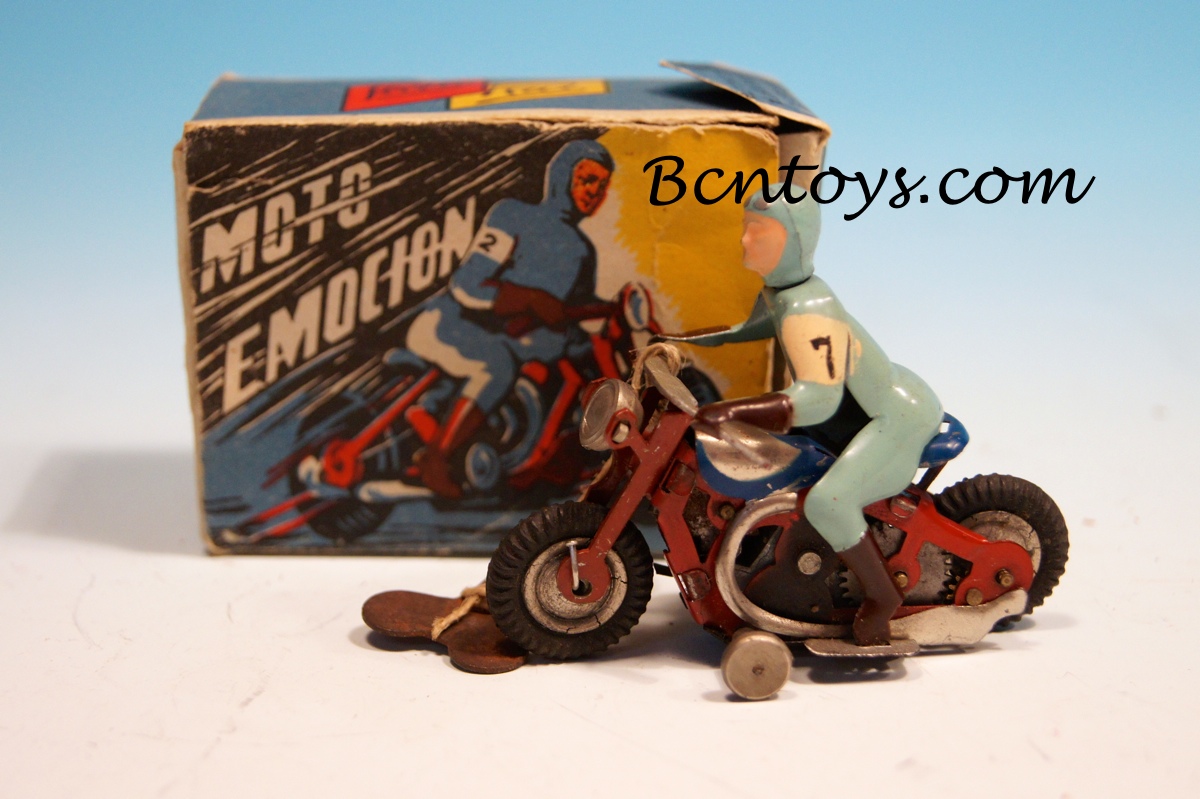 Moto Pulga Payá en caja original. Con llave. Funcionamiento a cuerda. Años 50.
