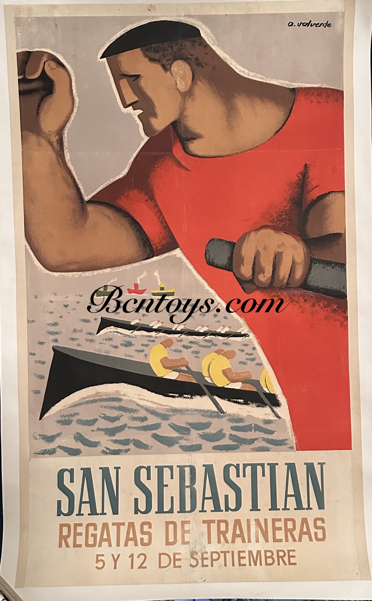 Cartel original San Sebastián. Traineras. 60 x 98 cm, (sin contar el entelado). Ilustrador A Valverde.